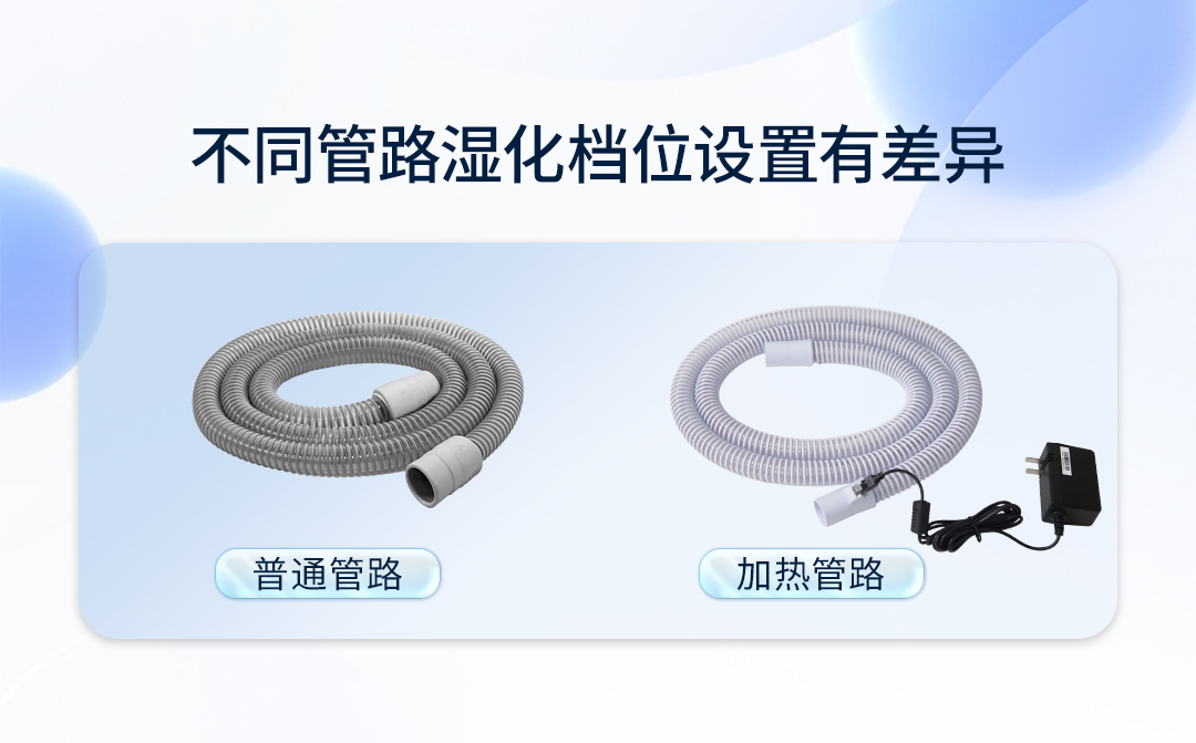 当选择手动模式的时候,使用不同管路,对应湿化档位也会有一些区别,需要用户根据温湿度感受进行湿化档位的调整,以匹配到适合自己的档位。